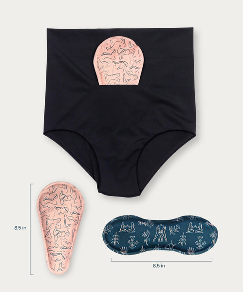 - Made with 4-way stretch, eco-friendly fabric that comfortably conforms to changing postpartum figures and holds ice/heat packs in place.